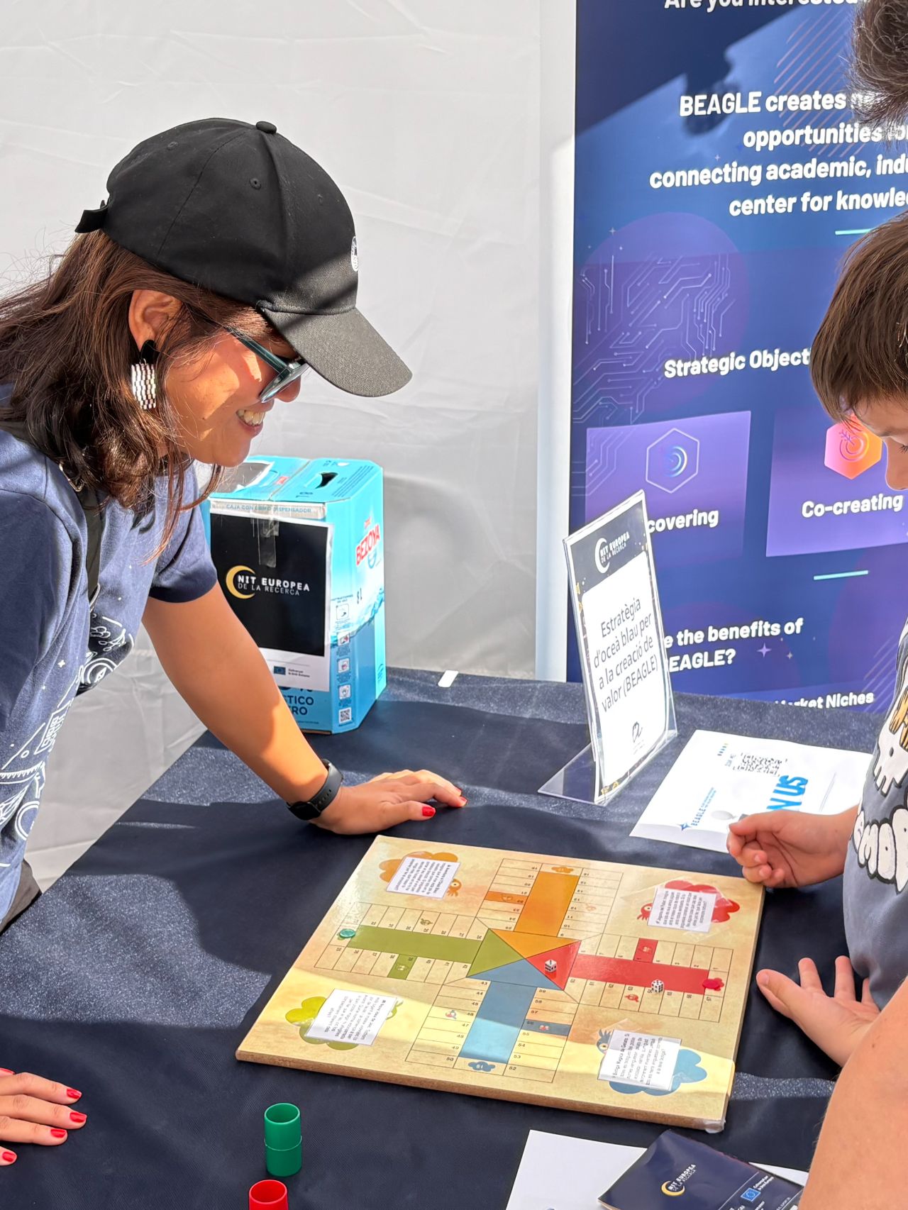 Our partners from URV, including Xiaoni Li and Yin Shi, brilliantly presented the BEAGLE methodology, but the real highlight was the hands-on fun! We engaged participants of all ages: children, teenagers, and adults in a creative activity using an interactive board game. Participants rolled dice and tackled innovation challenges, such as inventing a magical ice cream flavor, designing a unique robot, or creating new game rules.